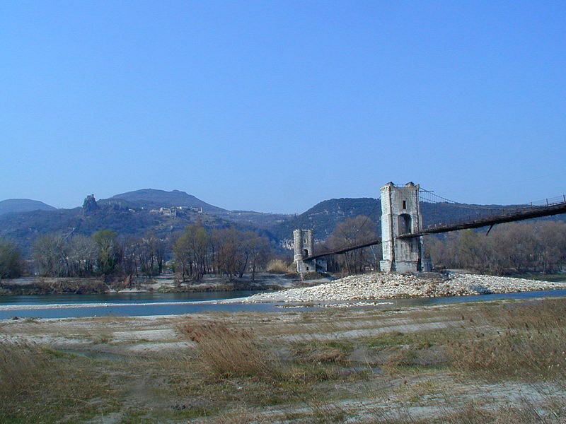 Fleuve franchi : le Rhône, entre départements de Ardèche et Drôme, à proximité : Rochemaure