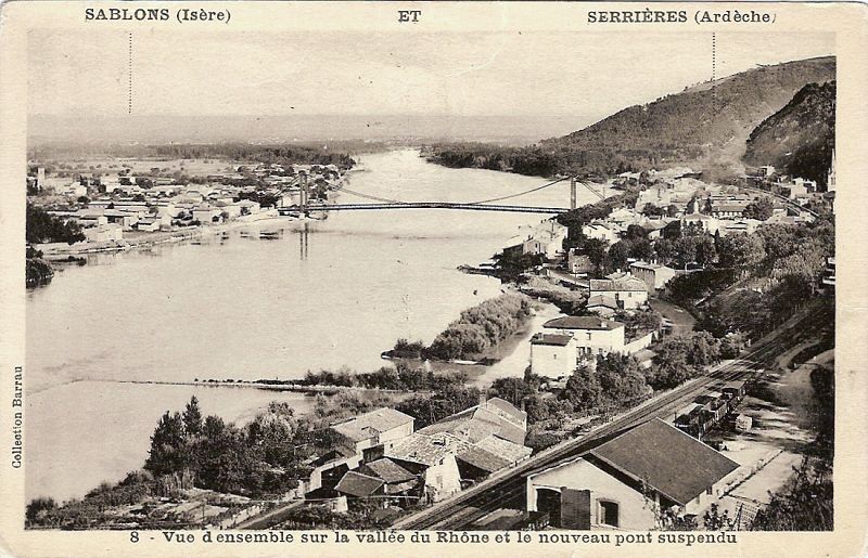 Vers 1930, l'ancien pont suspendu Seguin est en très mauvais état. La reconstruction de l'ouvrage fut mis au concours en 1931 et en 1933 il fut remplacé par un pont suspendu sans pilier central par l'entreprise Baudin.