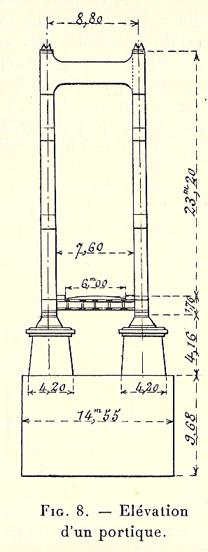 Le tablier devait comporter une chaussée de 6 mètres et de deux trottoirs de 0,75m.