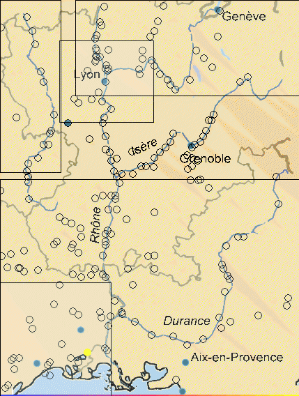 Fleuve franchi : le Rhône, entre départements de Gard et Bouches-du-Rhône, à proximité : St-Gilles-du-Gard