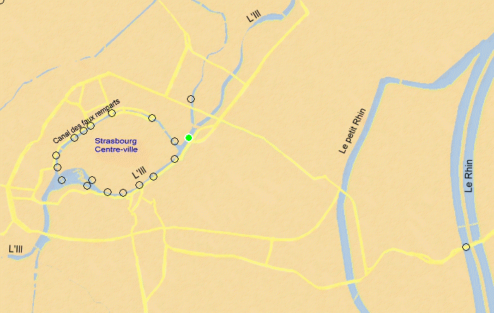 Fleuve franchi : l'Ill, département : Bas-Rhin, à proximité : Strasbourg, situé Pont Royal
