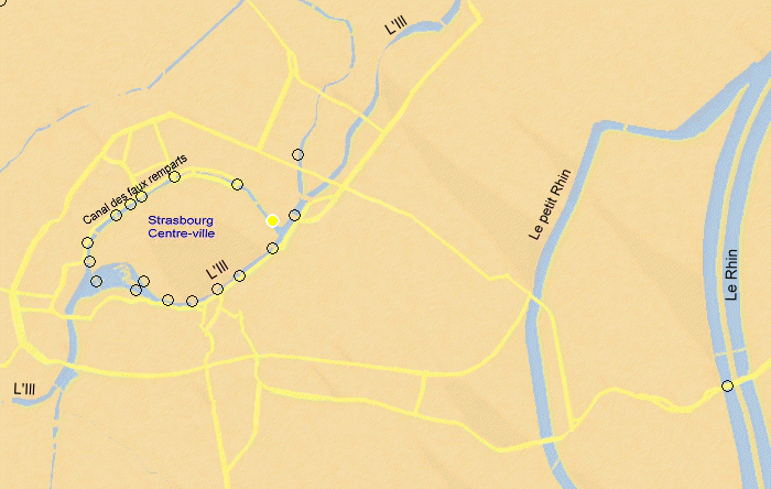Fleuve franchi : l'Ill, département : Bas-Rhin, à proximité : Strasbourg, situé Pont Saint-Etienne