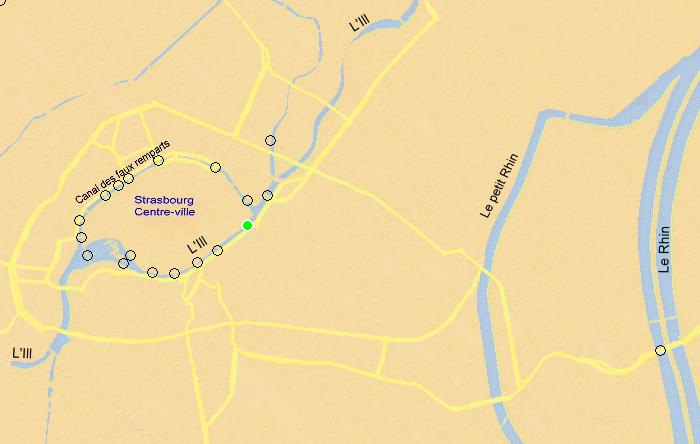 Fleuve franchi : l'Ill, département : Bas-Rhin, à proximité : Strasbourg, situé Pont Saint-Guillaume