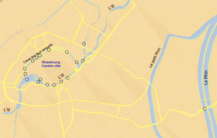 Fleuve franchi : l'Ill, département : Bas-Rhin, à proximité : Strasbourg, situé Pont Saint-Guillaume