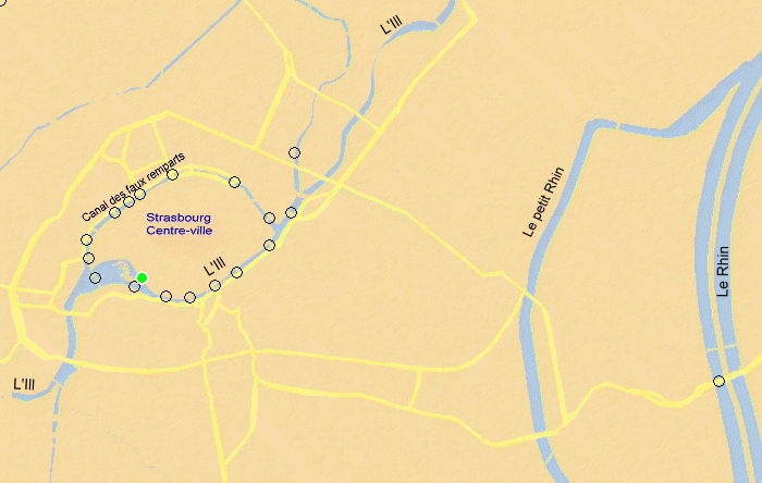Fleuve franchi : l'Ill, département : Bas-Rhin, à proximité : Strasbourg, situé Pont Saint-Martin