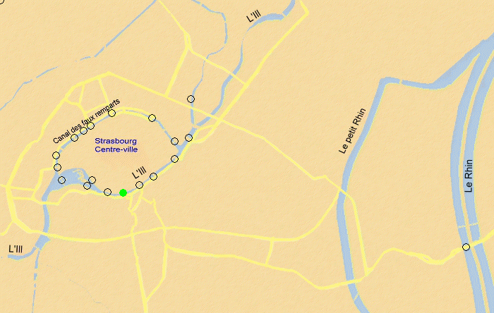 Fleuve franchi : l'Ill, département : Bas-Rhin, à proximité : Strasbourg, situé Pont Saint-Nicolas