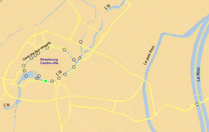 Fleuve franchi : l'Ill, département : Bas-Rhin, à proximité : Strasbourg, situé Pont Saint-Thomas