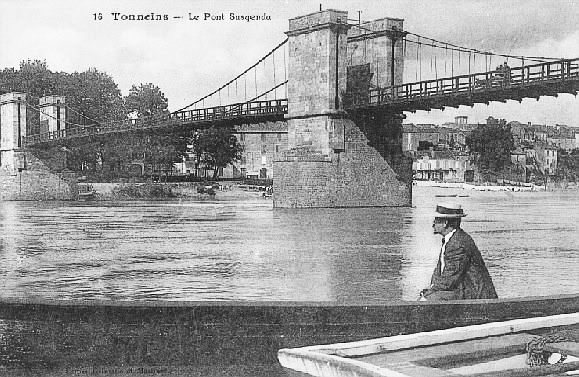 En plus des informations notées dans sa "carte d'identité" présentée ci-dessus, notons que le pont de Tonneins fut parmi les plus coûteux établis sur un chemin "vicinal". Estimé à 635 000 Fr, ce coût n'a été dépassé que par les ponts de Billancourt et de Saint-Ouen. La création de la Société des 4 ponts de la Garonne (3) précise la mise en commun des moyens de MM Seguin et Bayard pour la réalisation des 4 ponts (Port Ste-Marie, Tonneins, La Réole et Marmande).