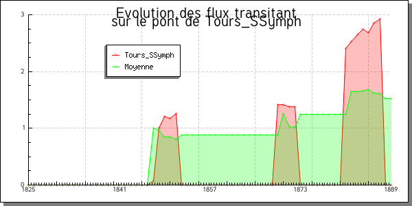 L'analyse de ces graphes mérite de prendre en compte a minima les évènements ayant trait à l'ouvrage (destruction, crues, reconstruction) mais aussi présence d'un nouvel ouvrage à proximité, de fait \"concurrent\". Malgré cela, ces courbes sont à l'image de l'activité de la ville ou de la région considérée.