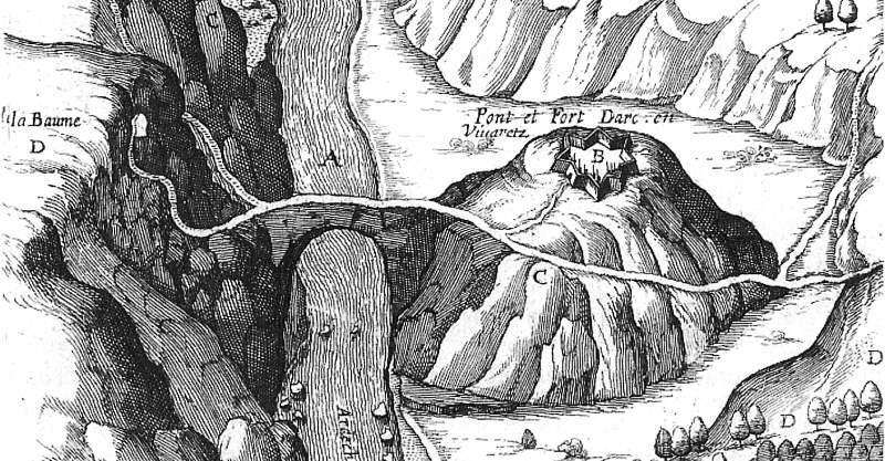 Malheureusement, Louis XIII et Richelieu, après la prise de Privas en 1629, avaient fait détruire celle-ci pour s'assurer qu'aucune troupe ne puisse utiliser le pont naturel.