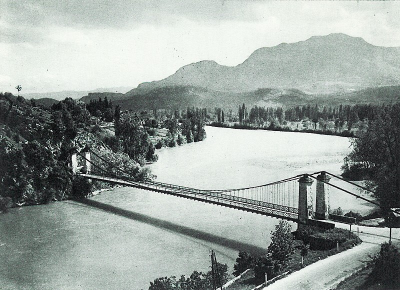 Ce pont construit à la Balme-sous-Pierre-Châtel, à proximité de Belley, permet de franchir le Rhône sur la route reliant à l'époque le Mont-du-Chat à la France, ouvrant ainsi une nouvelle voie de communication entre la France et l'Italie, longtemps rêvée par Napoléon.