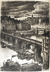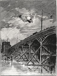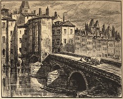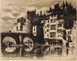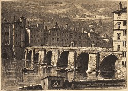 Lyon - Pont Morand (dessiné en 1888) et les maisons de la place Tolozan |