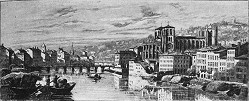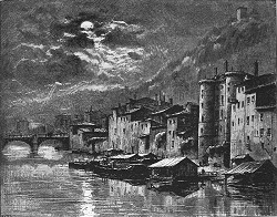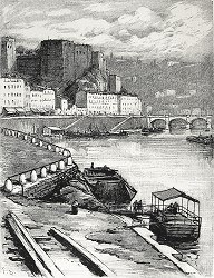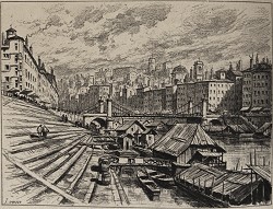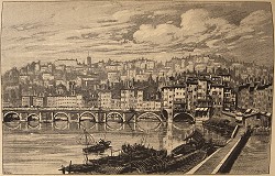 Lyon - L'ancien quai de Bondy et le pont de la feuillée en 1843 |