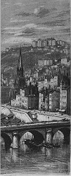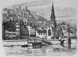 Lyon - Le pont du Change, le quai de Villeroi et l'amphithéâtre de la Saône du côté de la Croix-Rousse en 1842 |