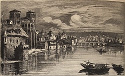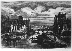 Lyon - vue idéale de l'ancienne rive de la Pescherie et du Pont du Change |