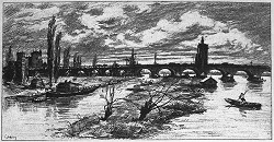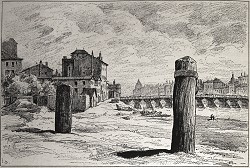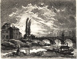 Le pont Morand et la berge du côté des Broteaux (d'après un dessin anonyme du début du XIXème) |