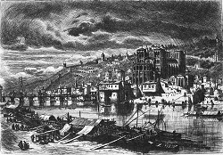 Lyon - Vue de l'église St-Jean en 1650 et pont de Pierre d'après une estampe de Perelle |