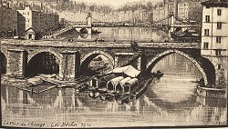Pont d'Ainay - dessin de Leymarie - 1840 |