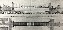 Pont suspendu de Jarnac - Gravure vers 1828 |