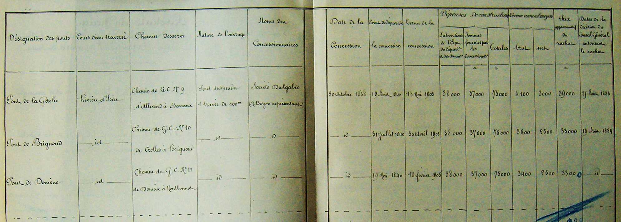 - Et finalement une procédure de rachat unique conclue le 23/9/1884 pour la somme de 105 000 Fr.