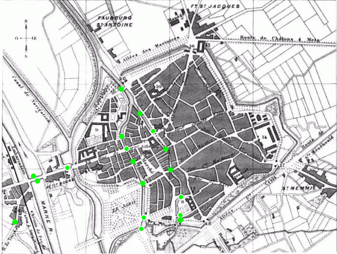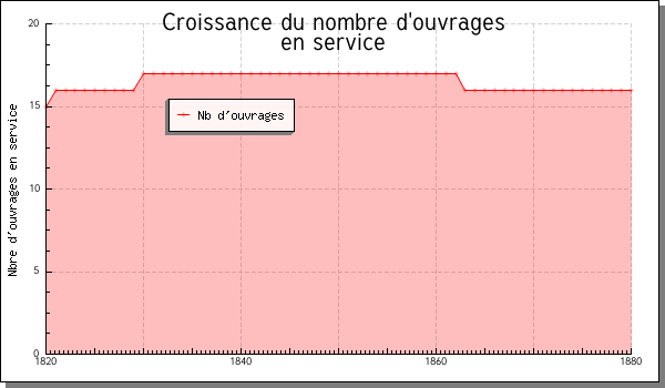 Tous les ouvrages, Pont des Sept Moulins - Châlons en Champagne - < 1028, Pont des Archers - Châlons en Champagne - 1602, Pont des cordeliers - Châlons en Champagne - < 1520, Pont des Fripiers - Châlons en Champagne - < 1321, Premier pont du Jard - Châlons en Champagne - 1541, Pont du Jard - Châlons en Champagne - 1801, Pont des mariniers (ou Saint-Antoine) - Châlons en Champagne - 1560, Pont de Marne ou des Moulins de l'Evêque (Porte de Marne) - Châlons en Champagne - 1610, Pont de Porte de Marne - Châlons en Champagne - 1830, Pont des Mathurins - 1560, Pont de Mauvillain - Châlons en Champagne - 1550, Pont de la Monnoye - Châlons en Champagne - < 1459, Pont de Jessaint - Châlons en Champagne - 1806, Premier pont du Nau - Châlons en Champagne - Vème siècle, Pont du Nau - Châlons en Champagne - 1829, Premier pont d'Ormesson - Châlons en Champagne - 1774, Pont d'Ormesson - Châlons en Champagne - 1821, Pont de Putte-Savatte - Châlons en Champagne - 1560, Pont Ruppé - Châlons en Champagne - 1667, Pont Vert ou Pont Saint-Martin - Châlons en Champagne - 1768, Pont Varin - Châlons en Champagne - 1845, Premier pont de Vaux - Châlons en Champagne - < 1242, Pont de Vaux - Châlons en Champagne - 1774, Pont des Viviers - Châlons en Champagne - 1612, Grand-pont de Marne - Châlons en Champagne - 1776,Evolution quantifiée des ouvrages en service