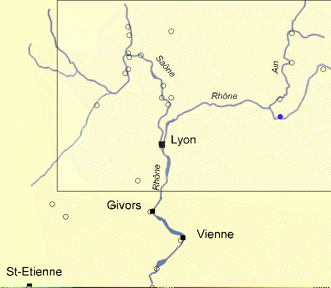 Fleuve franchi : le Rhône, entre départements de Ain et Isère, à proximité : Loyettes