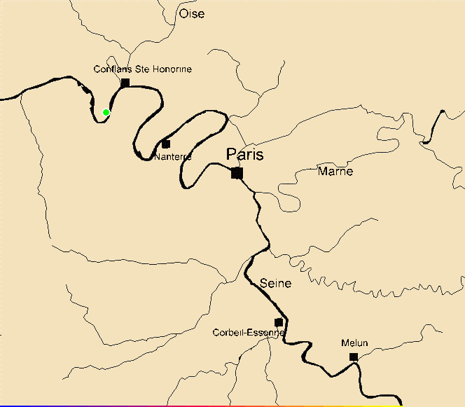 Ce pont à Poissy sur la Seine intervient dans l'histoire à de nombreuses reprises. Nous notons içi une étape importante dans la vie de ce pont : en 1849, on construisit la nouvelle arche principale en fer